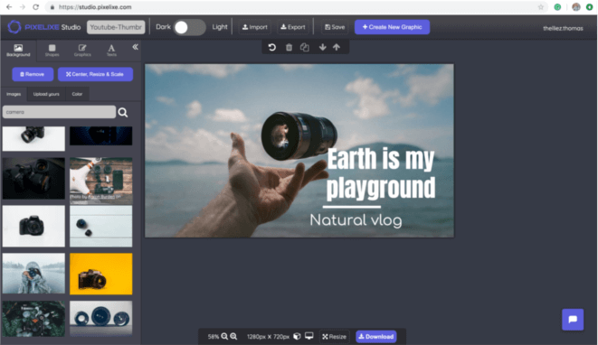 From our studio, you will benefit from more than 3.000.000+ photos, thousands of fonts, icons, a variety of photo effects and filters and even more. We created Pixelixe Studio with one objective in mind: Be sure that anyone can use our tool without any design skills. You will see that our product is way more easier to use than other competitors. By the way, do not hesitate to contact our team anytime to share feedback or if you need help. Now, unleash your inner creative and add text, graphics, icons, shapes, etc until your video thumbnail is exactly what you envisioned.