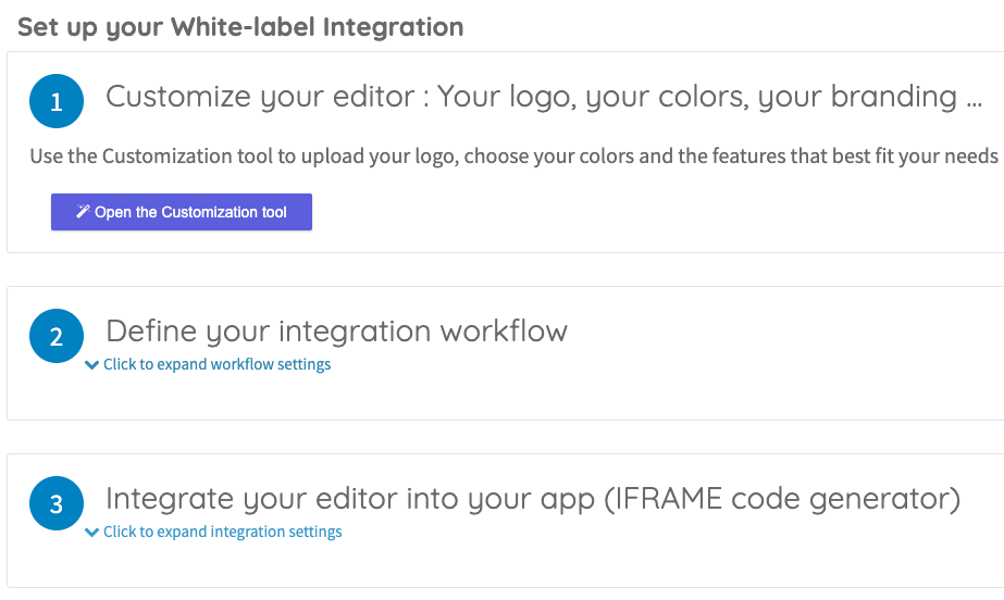 As you can see, we made sure it is possible to integrate the white-label editor in various ways to match your project requirements and skillset.