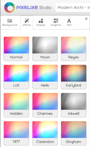 Once you chose or uploaded your background image, click on the "Effects" tab from the left menu and select your favorite filter among our presets.